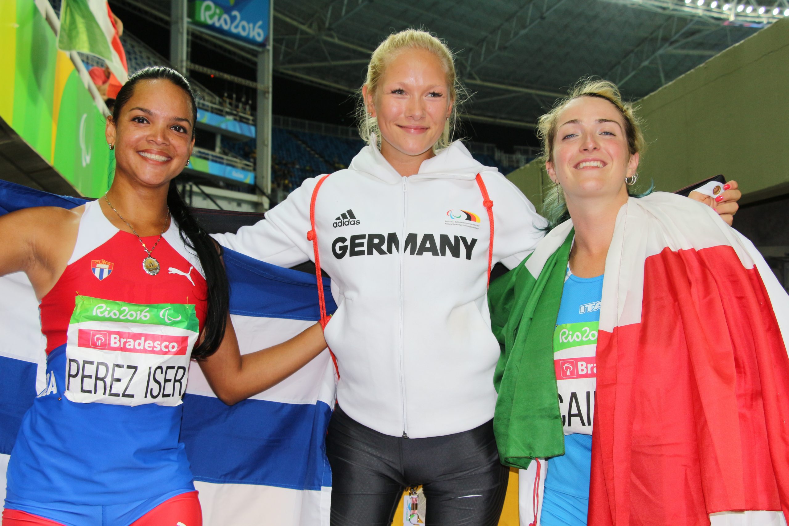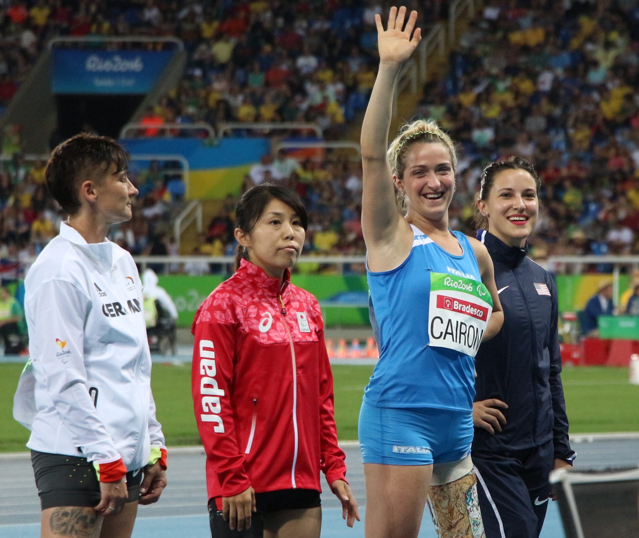 Giornata di pesca buona a Rio per gli azzurri paralimpici. Le buone notizie sotto forma di medaglie arrivano ancora dal nuoto con l’argento di Cecilia Camellini e i due bronzi di Giulia Ghiretti e Vincenzo Boni. Fantastica anche l’impresa dei due triathleti esordienti Michele Ferrarin e Giovanni Achenza, rispettivamente argento e bronzo. A concludere al meglio la giornata ci ha pensato una strepitosa Martina Caironi stabilendo il nuovo primato italiano nel salto in lungo con 4,96, seconda solo alla “marziana” tedesca Vanessa Low che spostato il suo primato del mondo avanti di 13 centimetri portandolo a 4,93.