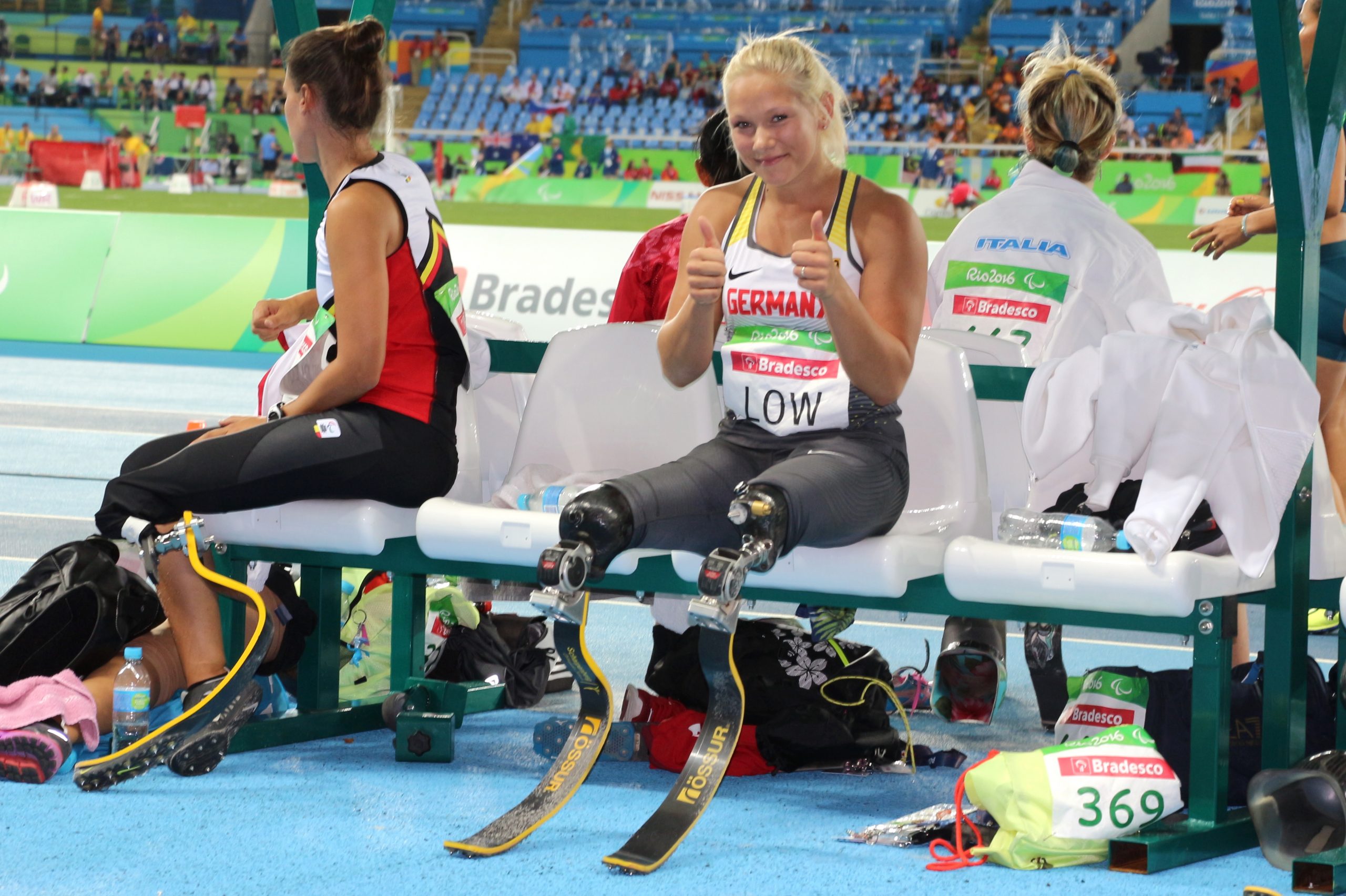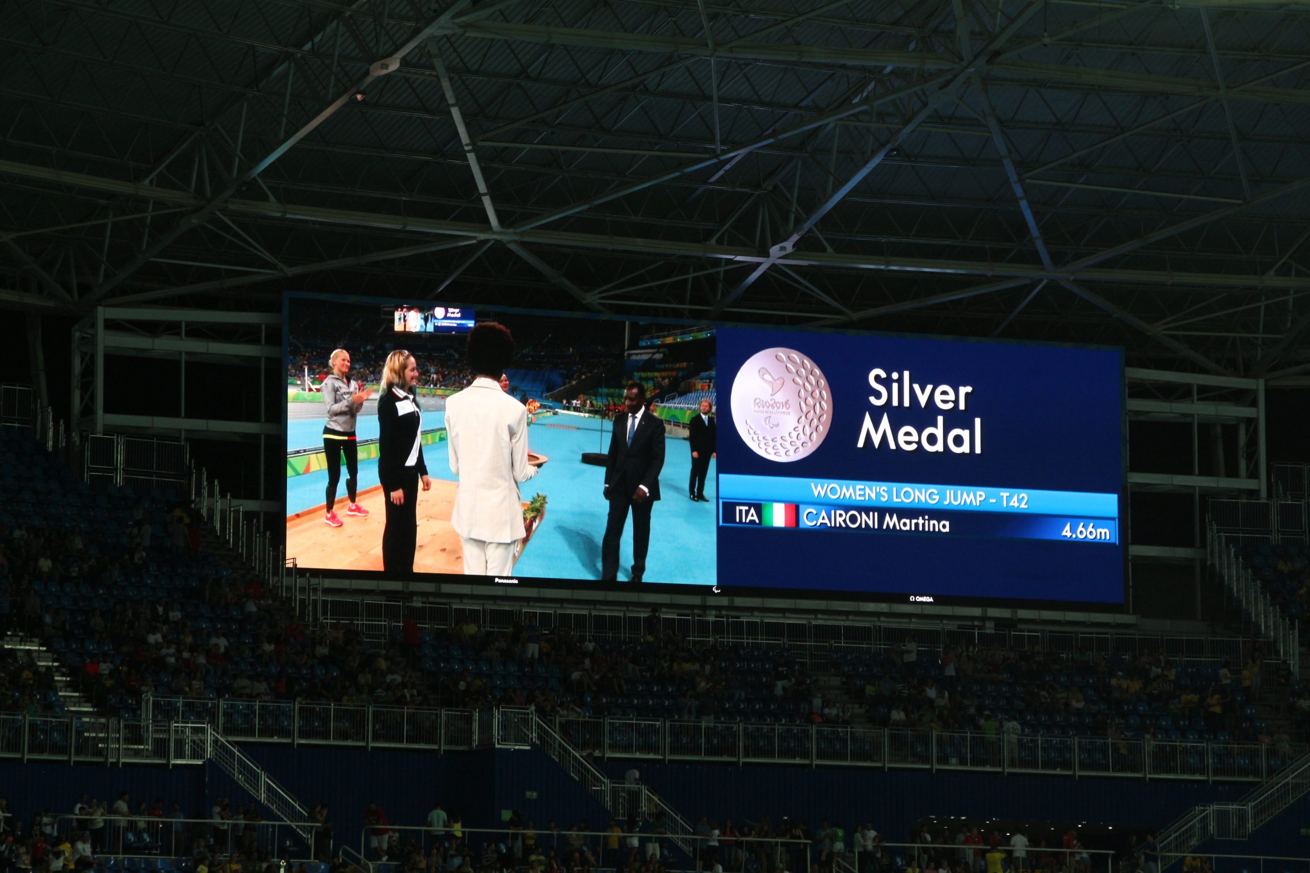“È una sensazione bella -dice a botta calda Martina – già dall’ora di pranzo sentivo le farfalle nello stomaco e le ho tenute fino al momento di entrare nello stadio con il tifo di questi brasiliani fantastici. Sono contenta di aver aperto le danze delle medaglie per la squadra di atletica, altre ne verranno sicuramente. Oggi il vero obiettivo era fare il personale, per ora i 6 cm mi bastano perché a febbraio avevo rischiato di non fare le Paralimpiadi per un infortunio. Quando la Low ha sparato questi salti incredibili, mi sono detta ‘non vinci, prova a fare almeno un salto bene’. Per fortuna ho ancora margini di miglioramento soprattutto a livello tecnico nella salita del ginocchio destro, ma ho bisogno di tempo per lavorarci. Dedico questa medaglia alle vittime del terremoto.