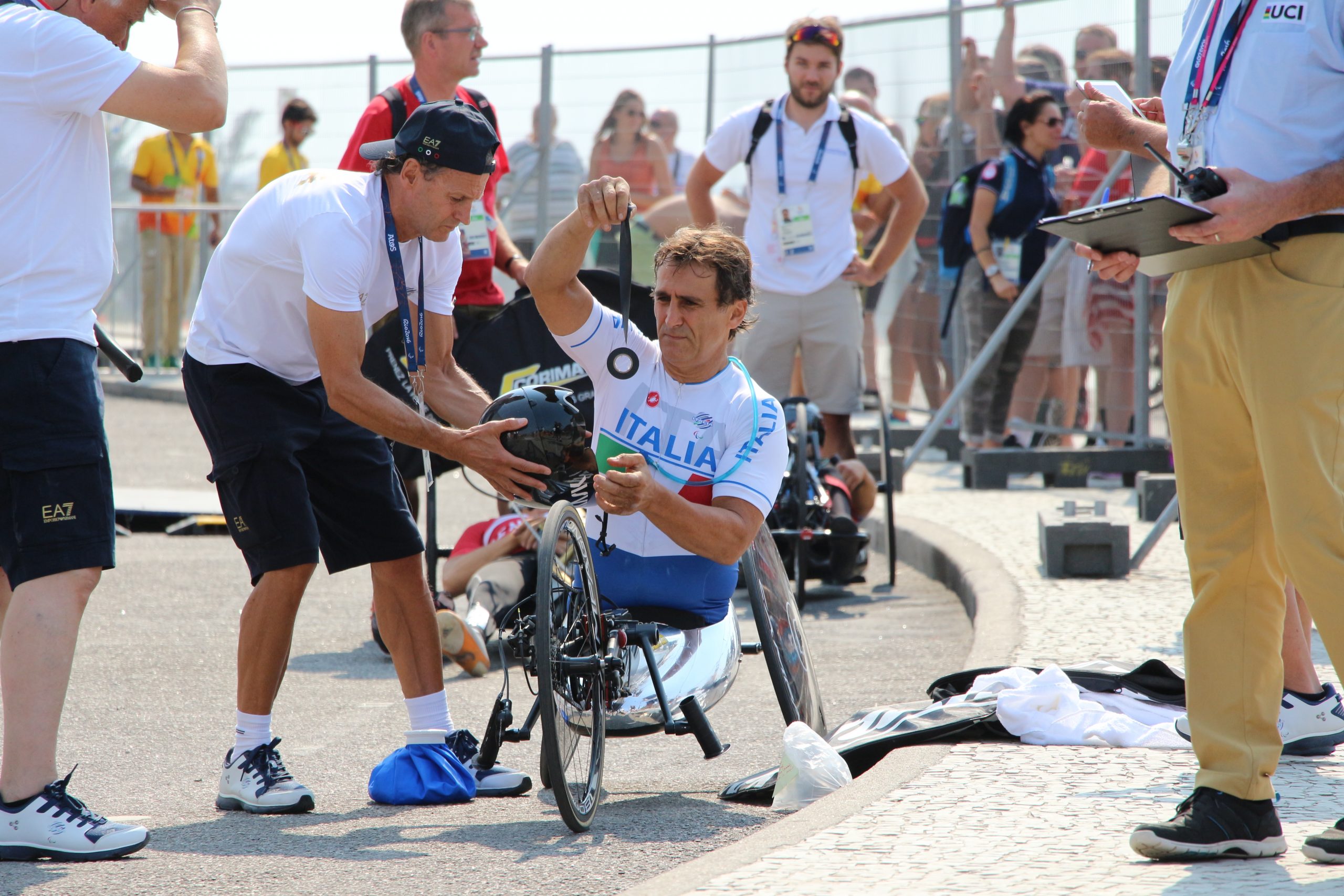 Pioggia di medaglie sull’Italia paralimpica con la squadra di ciclismo tirata a lucido. Nella prova a cronometro handbike gli azzurri hanno fatto filotto con tre medaglie d’oro al collo di Alex Zanardi, Vittorio Podestà e Luca Mazzone insieme alla medaglia di bronzo dell’eterna Francesca Porcellato. Altro bronzo nella gara in bici messo nel paniere di Giancarlo Masini. Ma le notizie d’oro non finiscono qui perchè allo Stadio Olimpico è salita in cattedra Assunta Legnante spazzando via le avversarie del lancio del peso. Quattro ori e due bronzi che portano il medagliere dell’Italia a quota 21. Ma questa giornata pormette altre gioie già nelle prossime ore con Bebe Vio in finale del fioretto edn una lunga e corposa serata del nuoto. L’importante è esagerare!