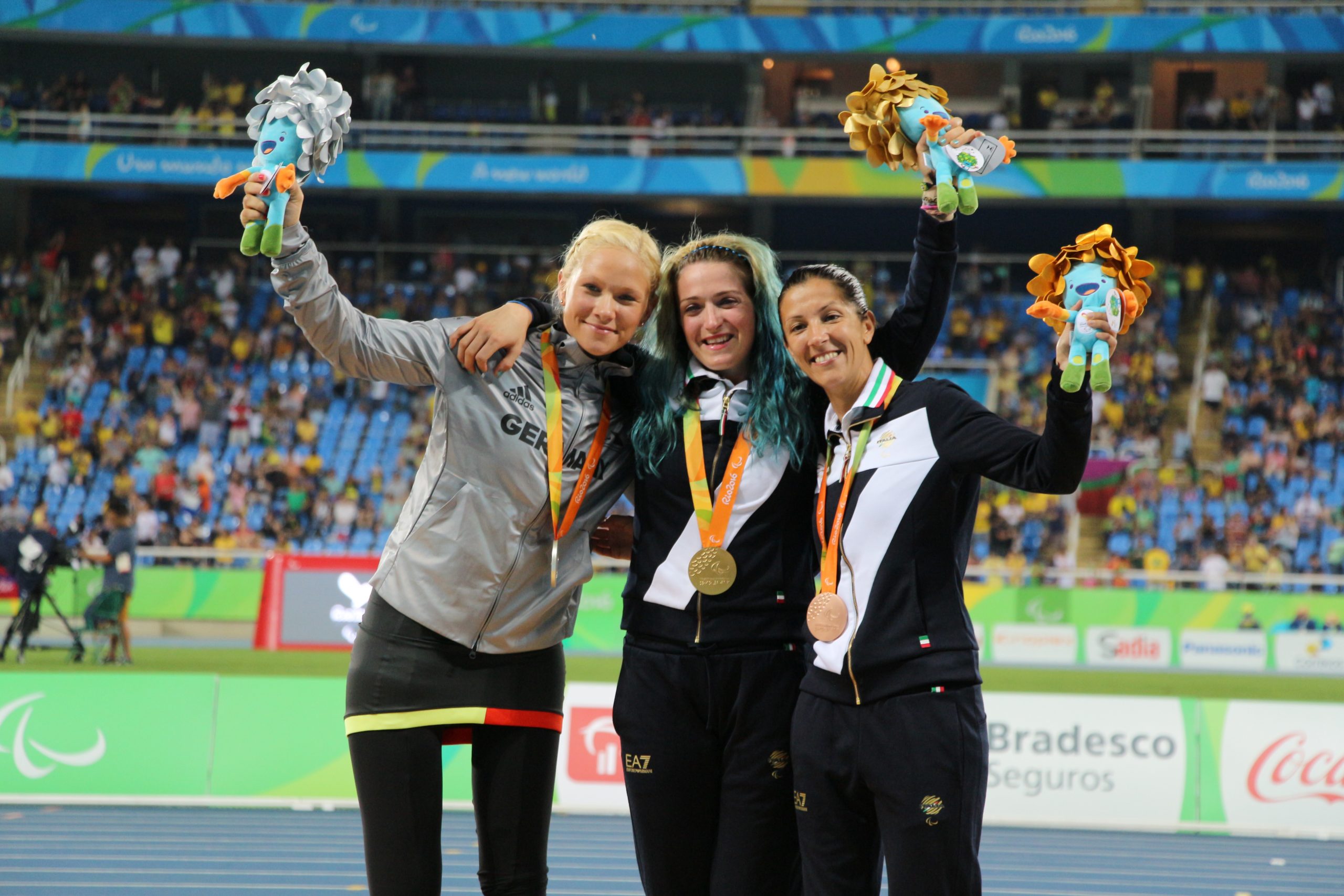 E sono 39! L’Italia paralimpica è diventata grande sfiorando i quaranta. Le ultime firme sul medagliere azzurro delle prime paralimpiadi sudamericano le hanno messe Martina Caironi e Monica Contrafatto (l’arrivo del titolo è di Mauro Ujetto) nella stessa gara, i 100mt, sulla fantastica pista che un mese fa ha celebrato l’ultima corsa del Re Mida della velocità Usain Bolt. Che storia quella della Contrafatto! Quattro anni fa dal suo letto d’ospedale dov’era ricoverato per l’amputazione della gamba causata in seguito ad un attacco subito in Afghanistan, vide in tv la vittoria nei 100 metri di Martina Caironi, amputata come lei, alle Paralimpiadi di Londra. Un immagine che colpì Monica tanto da farle scattare una promessa con se stessa: “tra quattro anni a Rio voglio esserci anch’io!”. Promessa mantenuta, tagliando il traguardo alle spalle di Martina, preceduta solo dalla tedesca Vanessa Low. Poco prima del doppio piatto azzurro dell’Olimpico altri due servizi niente male: Arjola Trimi d’argento nei 50 stile e Andrea Tarlao nella corsa in linea di Pontal che conquista una medaglia di bronzo, al termine di una gara che ha visto in volata una caduta, per fortuna senza conseguenze gravi se non quella di togliere dal podio i due protagonisti ormai certi dei primi due posti, al contrario di quella del quarantottenne iraniano Bahman Golbarnezhad, che cadendo su un tratto in discesa ha sbattuto violentemente la testa sull’asfalto perdendo la vita durante il trasporto in ospedale.