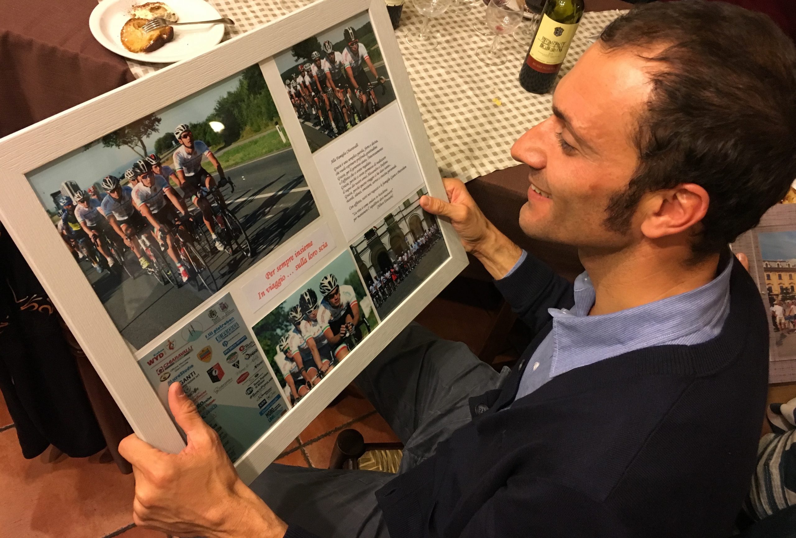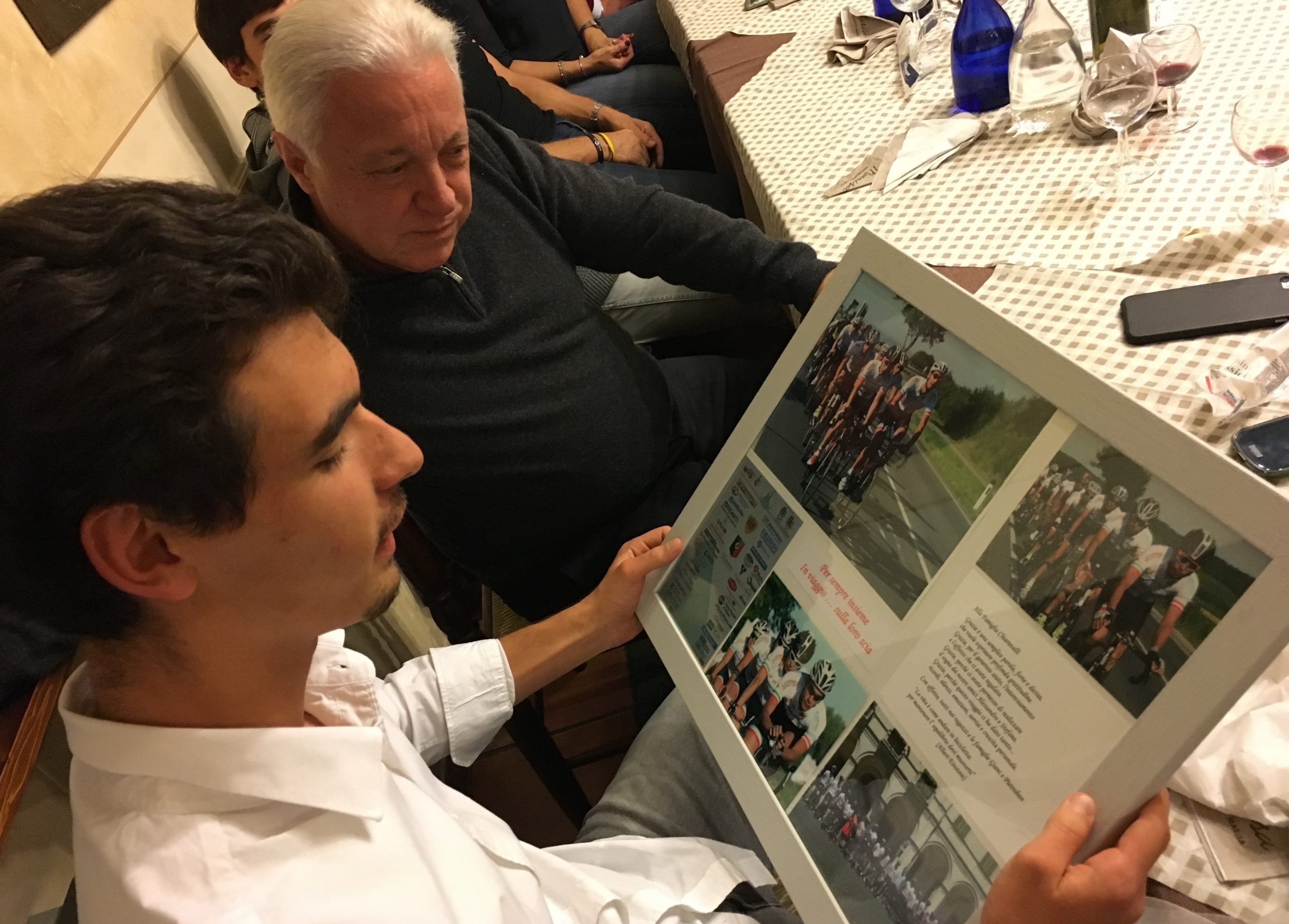 L’hanno pensata insieme, l’hanno pedalata insieme e insieme hanno vissuto l’emozione di arrivare a Cracovia, da Papa Francesco, nel luglio scorso, nella giornata mondiale della gioventù, partendo da Cassano Magnago. Ancora insieme hanno cenato ricordando quella magnifica cavalcata con il pensiero a due capitani andati in fuga troppo presto ma sempre in gruppo. La squadra di “In viaggio…sulla loro scia”, per l’occasione rinforzata da due campioni come Stefano Zanini e Ivan Basso, si è ritrovata per trascorrere un altra serata insieme, con le mamme e i papà di Alessandro Giani e Stefano Pietrobon. La pedalata a Cracovia è stata solo la prima tappa dell’associazione creata da Davide e Daniela Giani con Fabrizio e Annalisa Pietrobon, subito adottata da tanti amici e sostenitori, al punto da far fatica a comprenderli sulla maglia celebrativa dell’evento celebrato e partecipato con il pensiero fermo su Alessandro e Stefano. Su tutti l’imprenditore Mario Chiaravalli autentico locomotore di un passaparola capace di generare una rete benefica in continua crescita ed ormai prossima a realizzare i primi progetti dedicati ai giovani. Per sempre insieme, in viaggio…sulla loro scia…