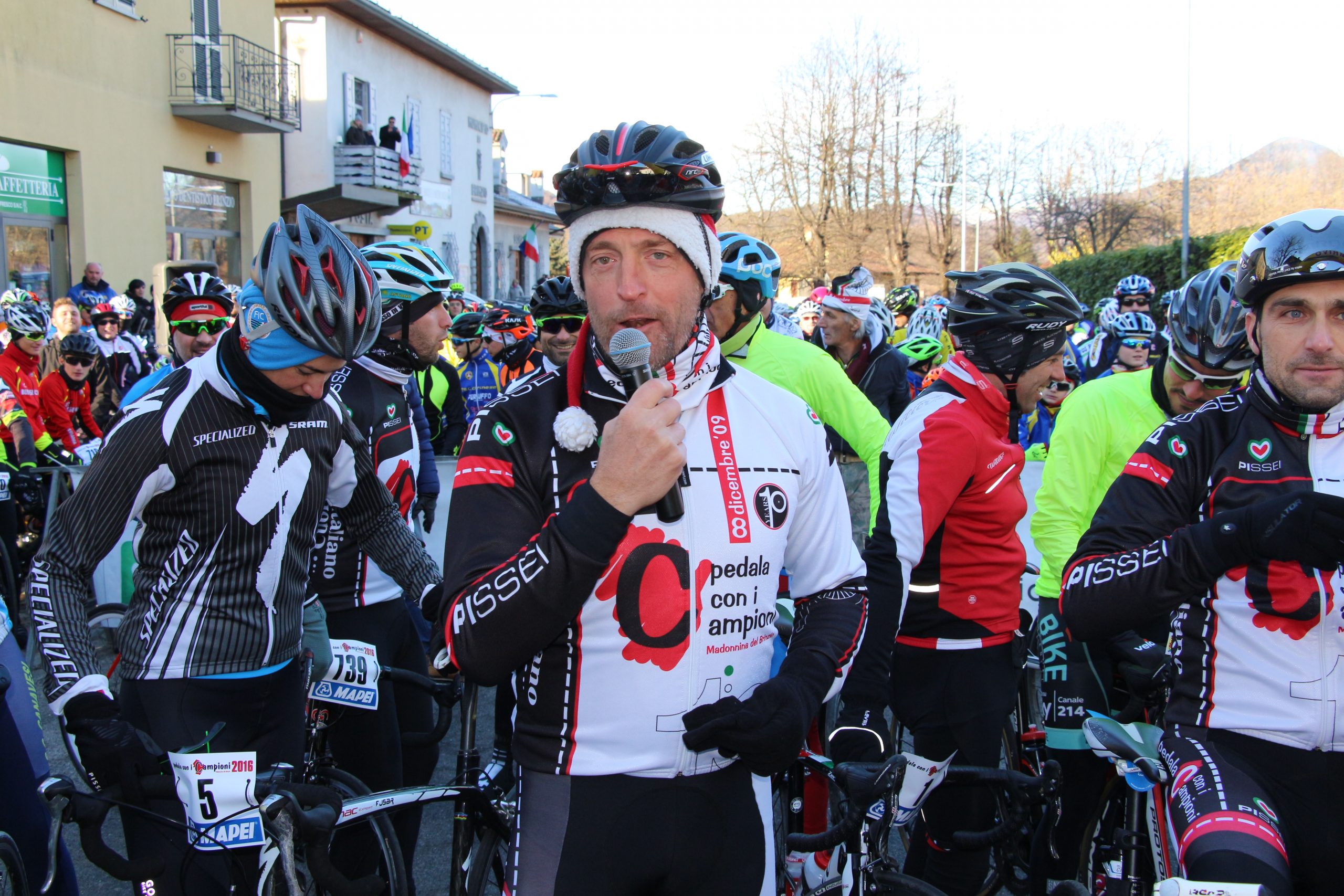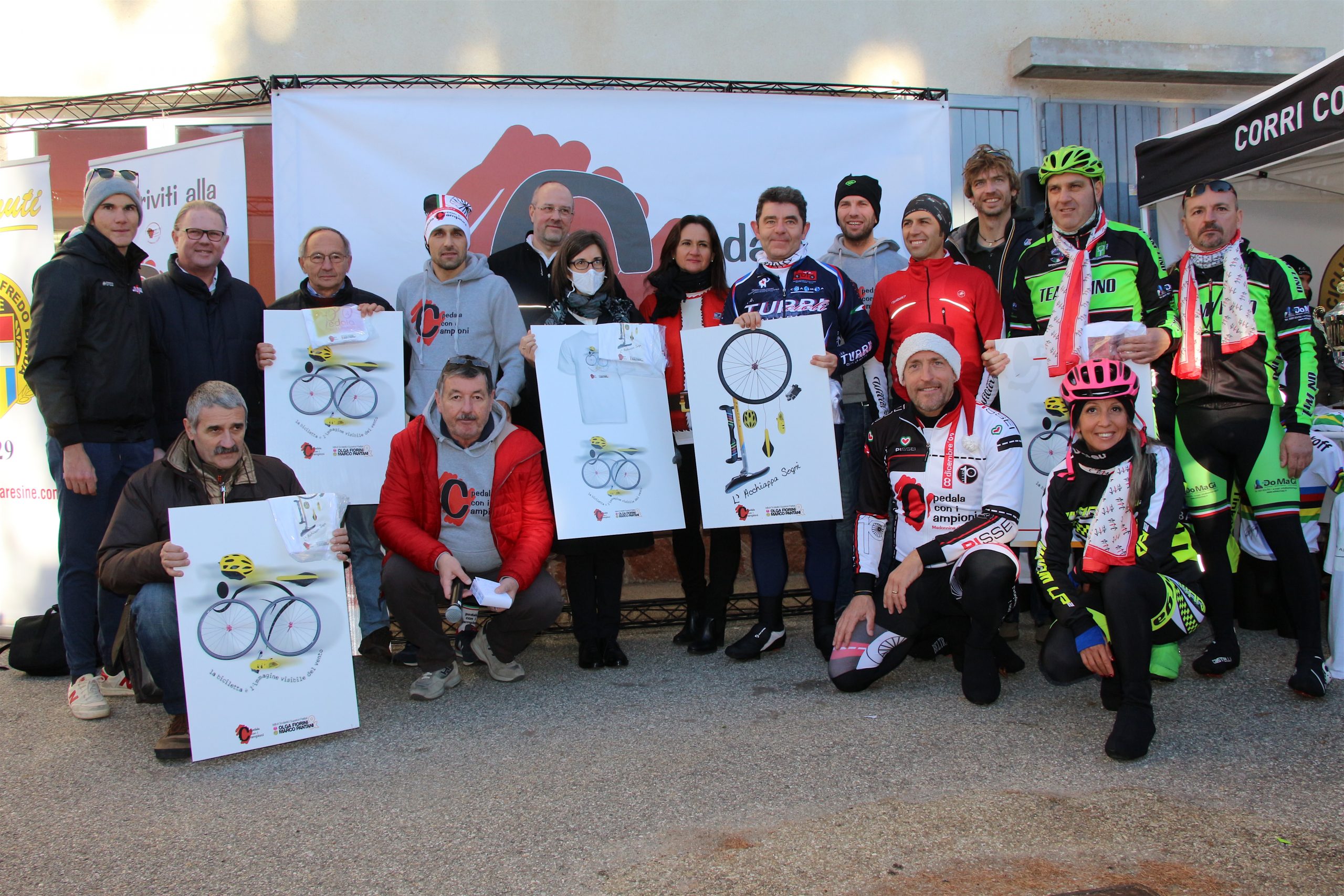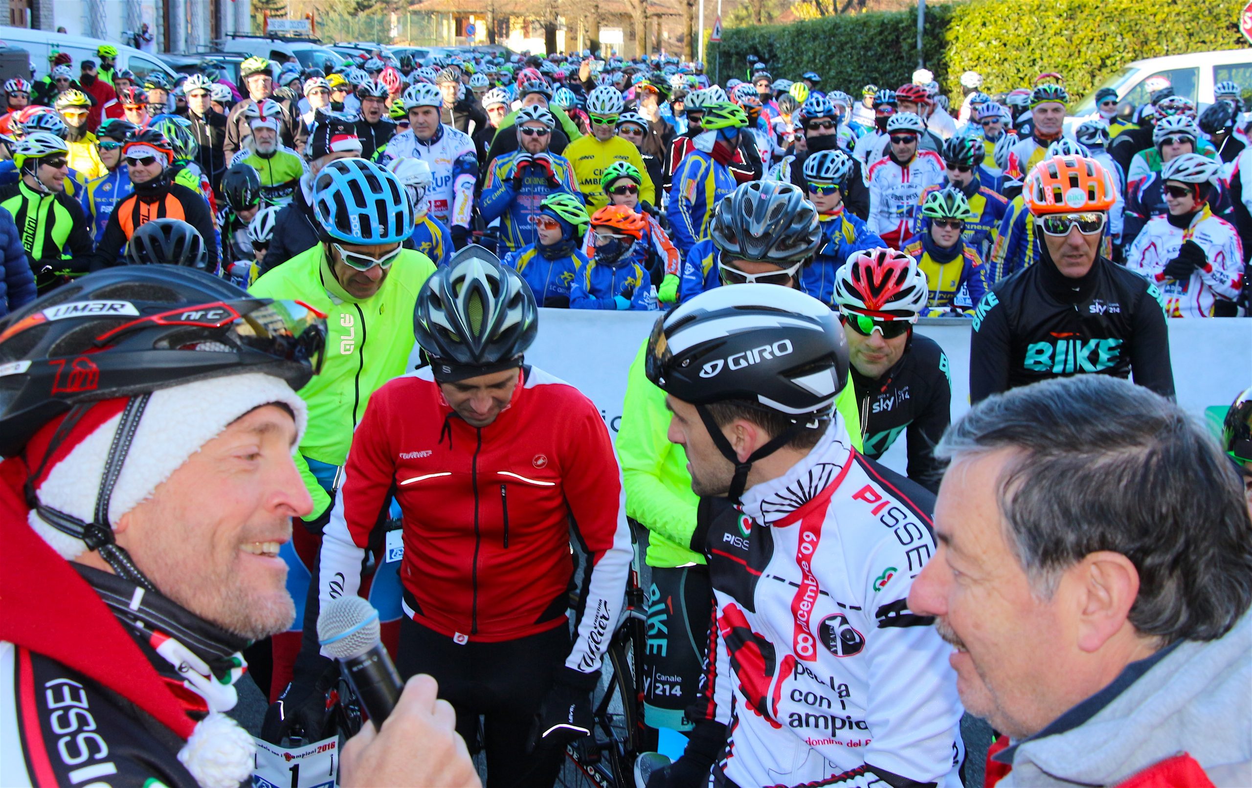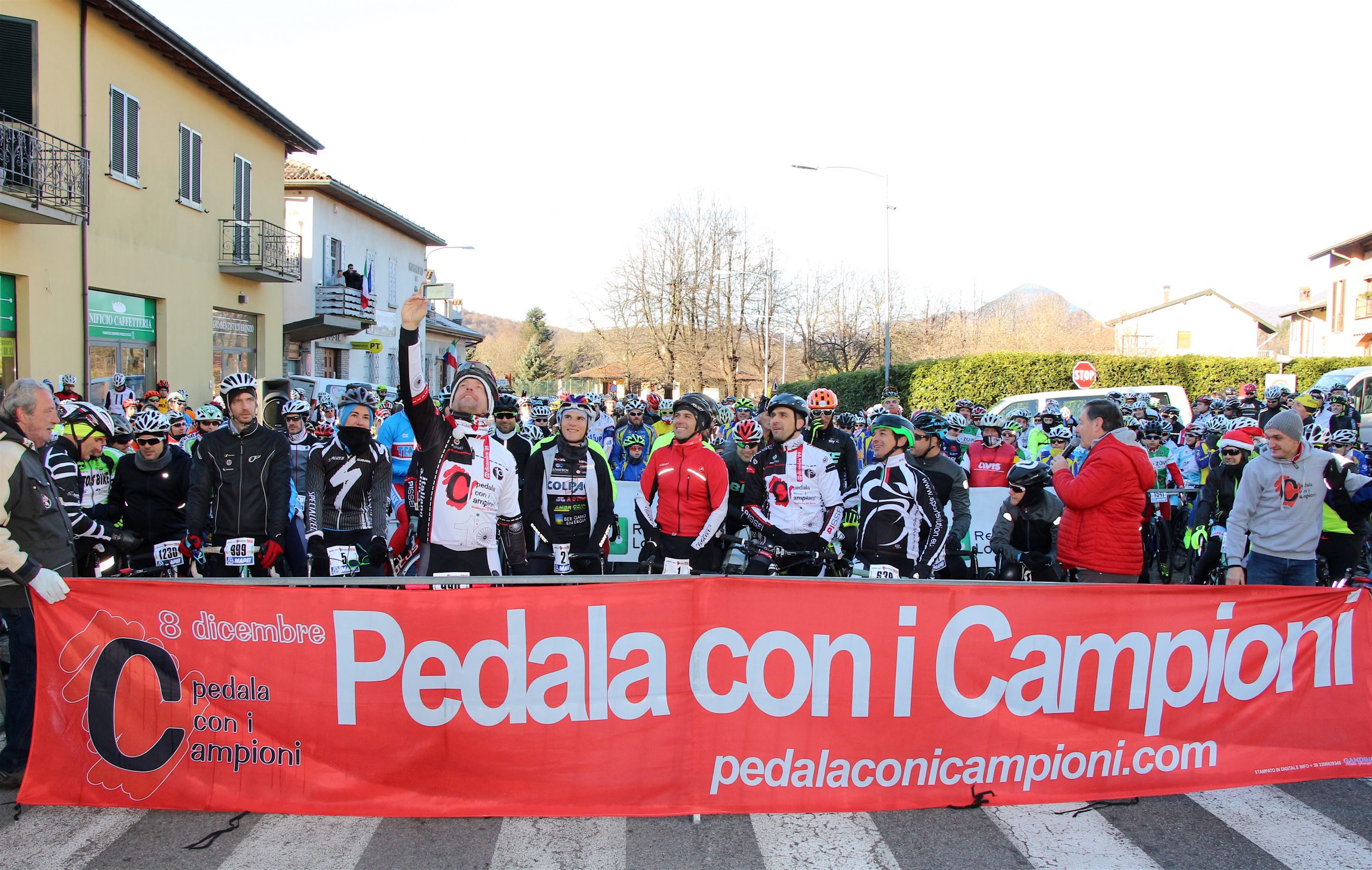 Puntuale come il Natale la “Pedala con i campioni” è partita da Brinzio per colorare il percorso che attraverso Varese e la Valcuvia ha riportato il plotone dei 1600 iscritti al punto di partenza, dopo aver pedalato sui 45km del tracciato disegnato e organizzato dalla Società Ciclistica Alfredo Binda. La giornata di sole ha illuminato i protagonisti del tradizionale appuntamento cicloturistico voluto e promosso dagli ex corridori professionisti varesini guidati da Stefano Zanini, Dario Andriotto, Tupak Casnedi e Cristiano Frattini. Capitani di giornata il due volte maglia rosa Gilberto Simoni e il prof varesino Edward Ravasi del Team Colpack, con i campioni del canottaggio Sara Bertolasi ed Elia Luini. Dal ponte di comando Sergio Gianoli ha dettato i tempi di una giornata dove non è mancata la preghiera con la benedizione davanti alla Cappella della Madonnina del Brinzio e al monumento ai corridori scomparsi, dove tutto cominciò diciassette anni fa al termine della ristrutturazione finanziata con le iscrizioni a quella prima edizione che non venne “pedalata” a causa del maltempo.