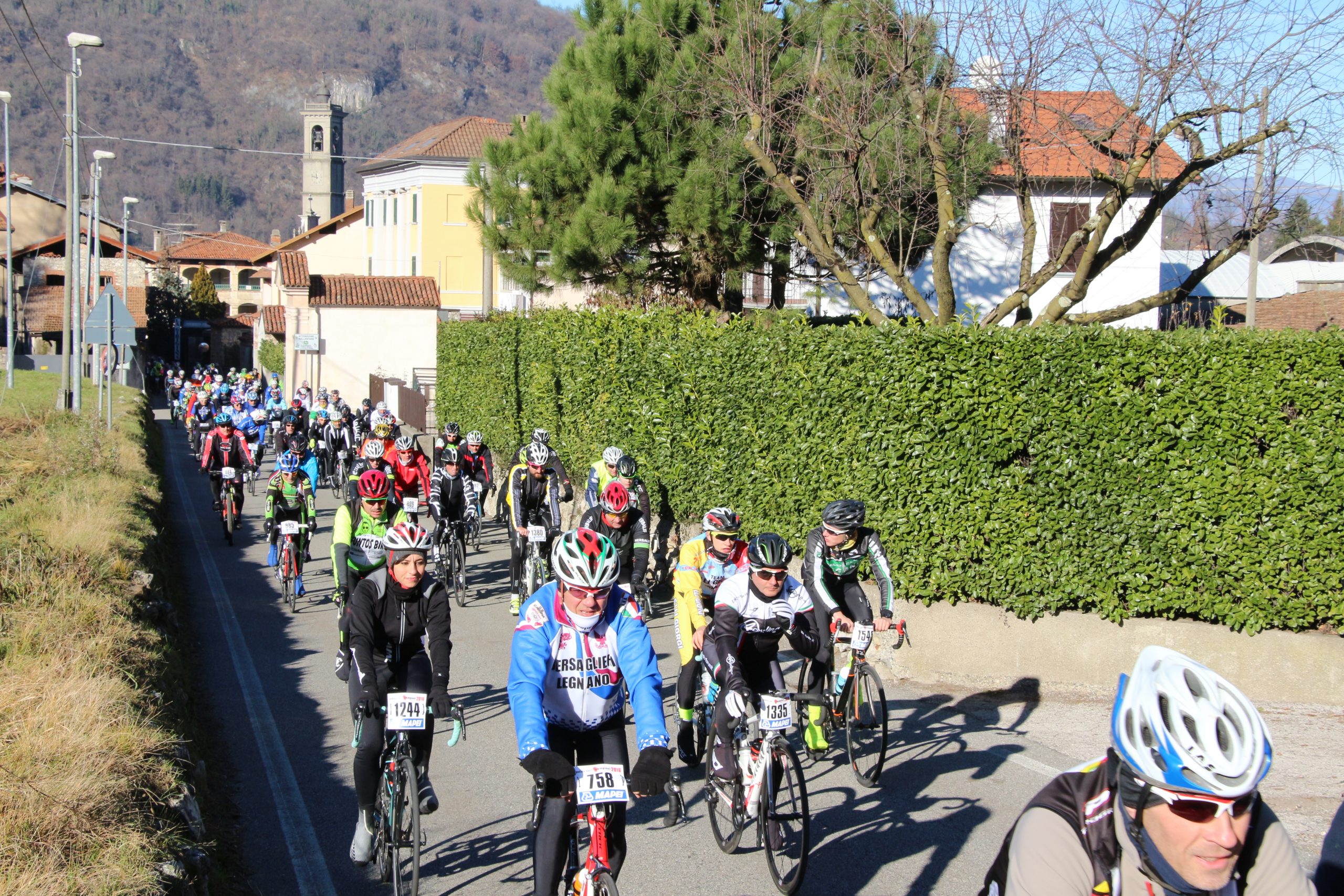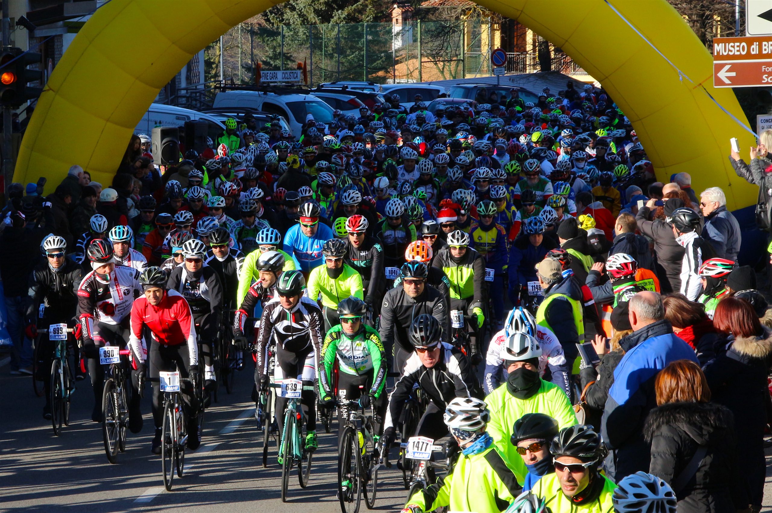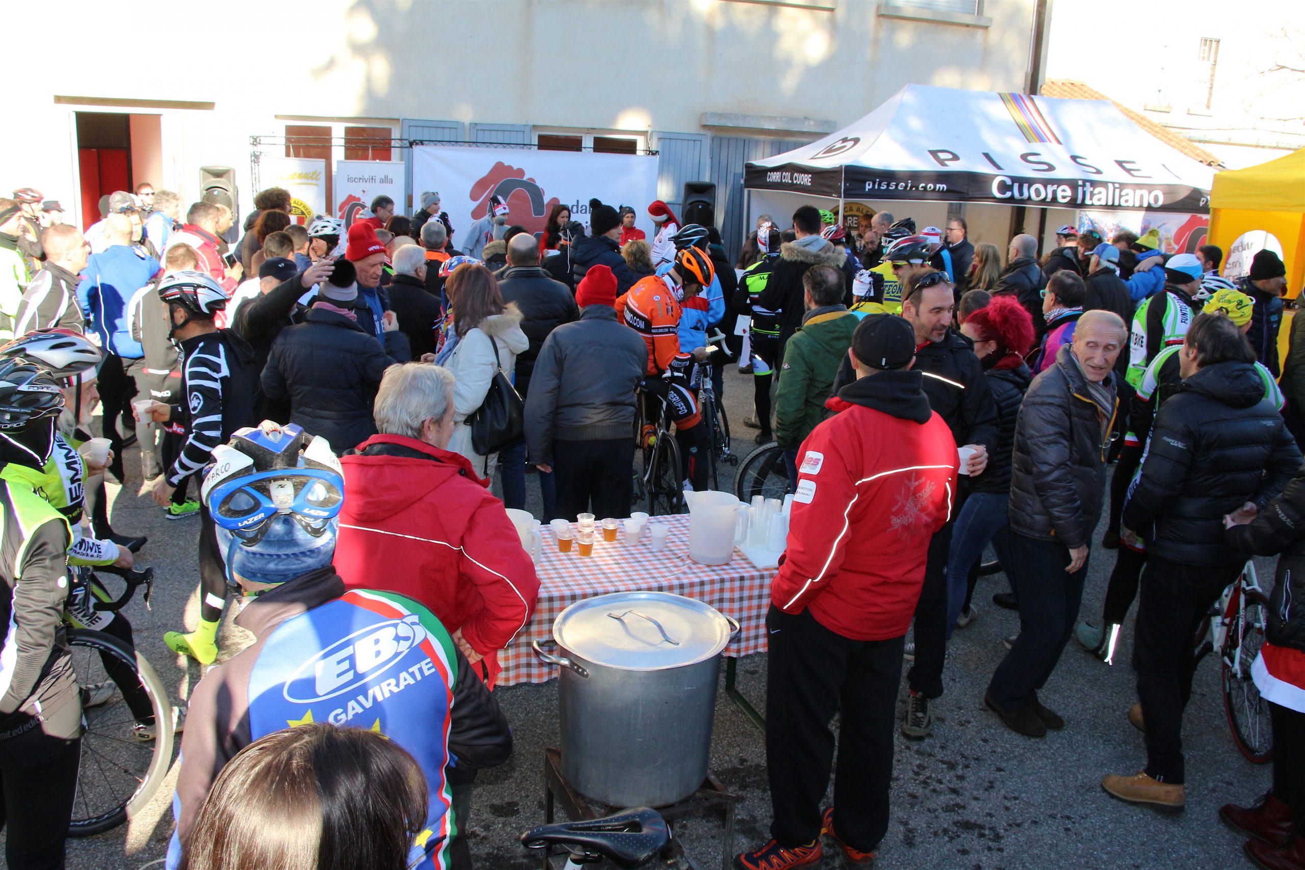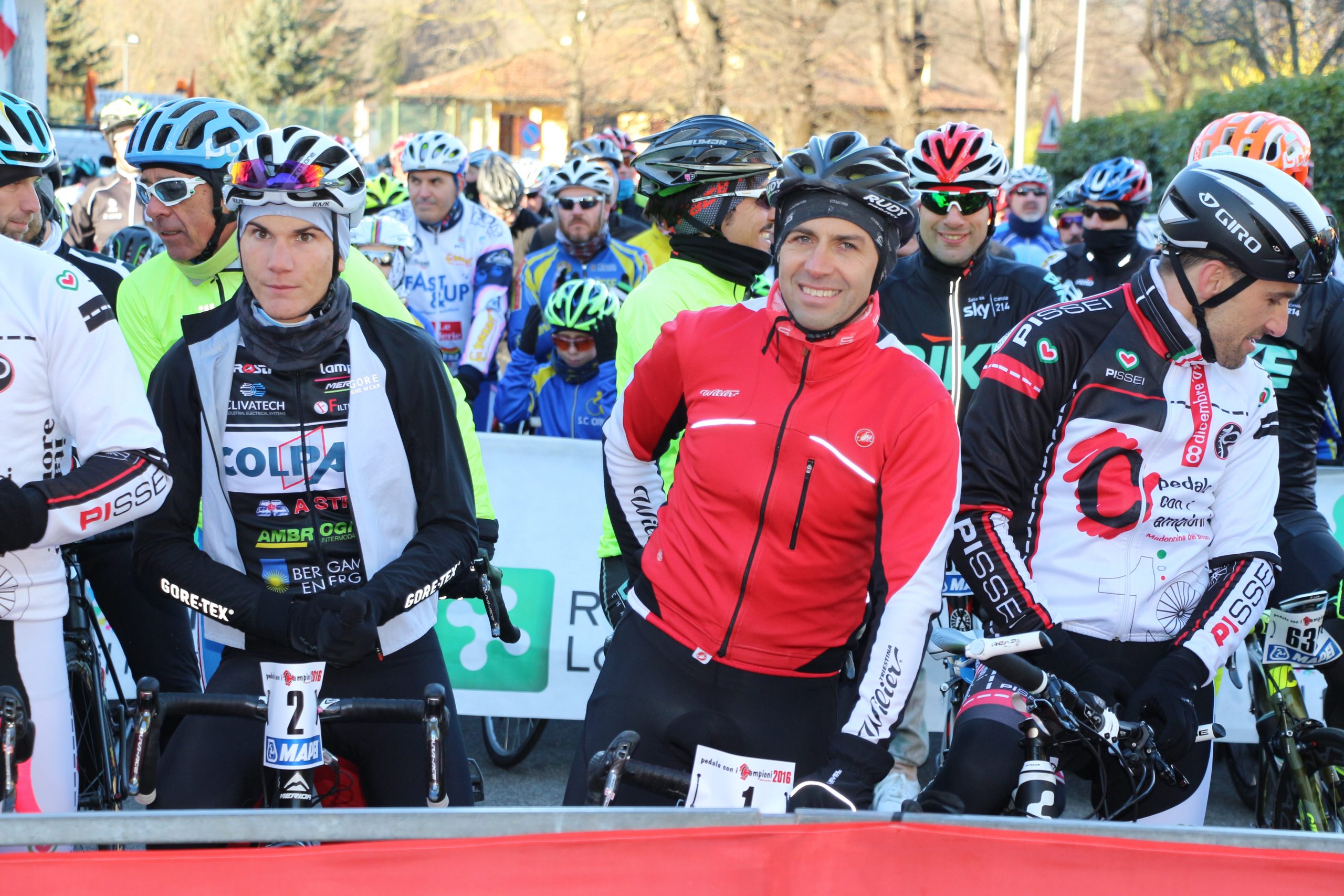 Puntuale come il Natale la “Pedala con i campioni” è partita da Brinzio per colorare il percorso che attraverso Varese e la Valcuvia ha riportato il plotone dei 1600 iscritti al punto di partenza, dopo aver pedalato sui 45km del tracciato disegnato e organizzato dalla Società Ciclistica Alfredo Binda. La giornata di sole ha illuminato i protagonisti del tradizionale appuntamento cicloturistico voluto e promosso dagli ex corridori professionisti varesini guidati da Stefano Zanini, Dario Andriotto, Tupak Casnedi e Cristiano Frattini. Capitani di giornata il due volte maglia rosa Gilberto Simoni e il prof varesino Edward Ravasi del Team Colpack, con i campioni del canottaggio Sara Bertolasi ed Elia Luini. Dal ponte di comando Sergio Gianoli ha dettato i tempi di una giornata dove non è mancata la preghiera con la benedizione davanti alla Cappella della Madonnina del Brinzio e al monumento ai corridori scomparsi, dove tutto cominciò diciassette anni fa al termine della ristrutturazione finanziata con le iscrizioni a quella prima edizione che non venne “pedalata” a causa del maltempo.