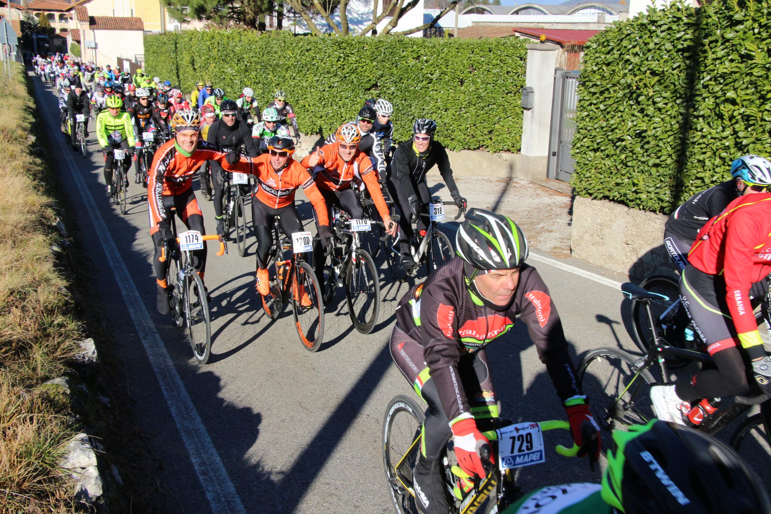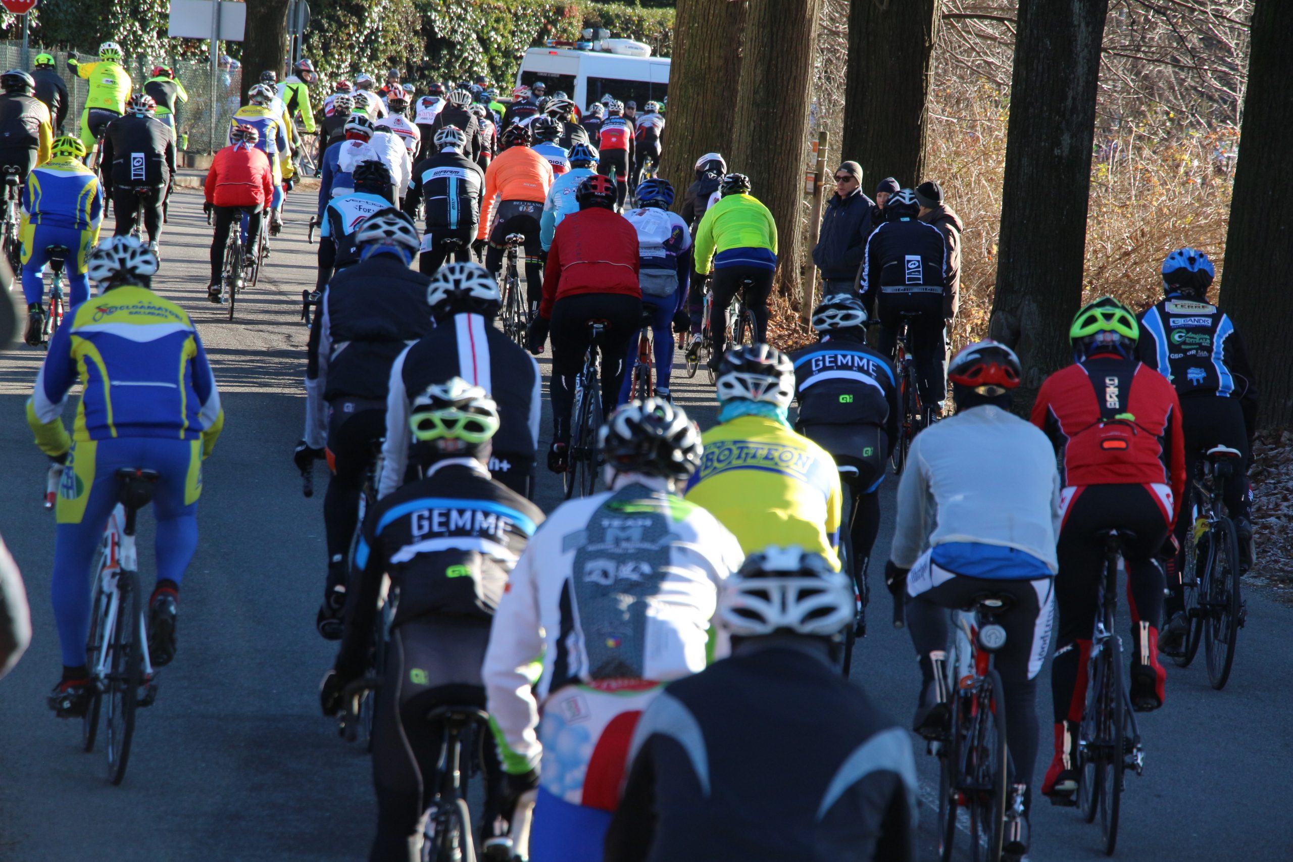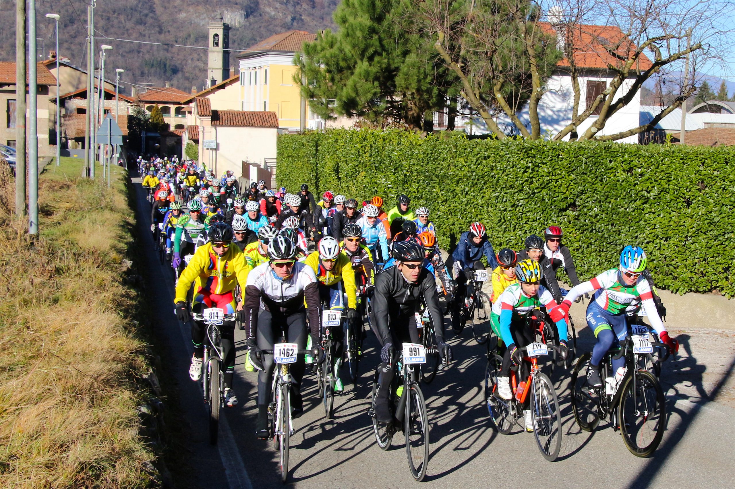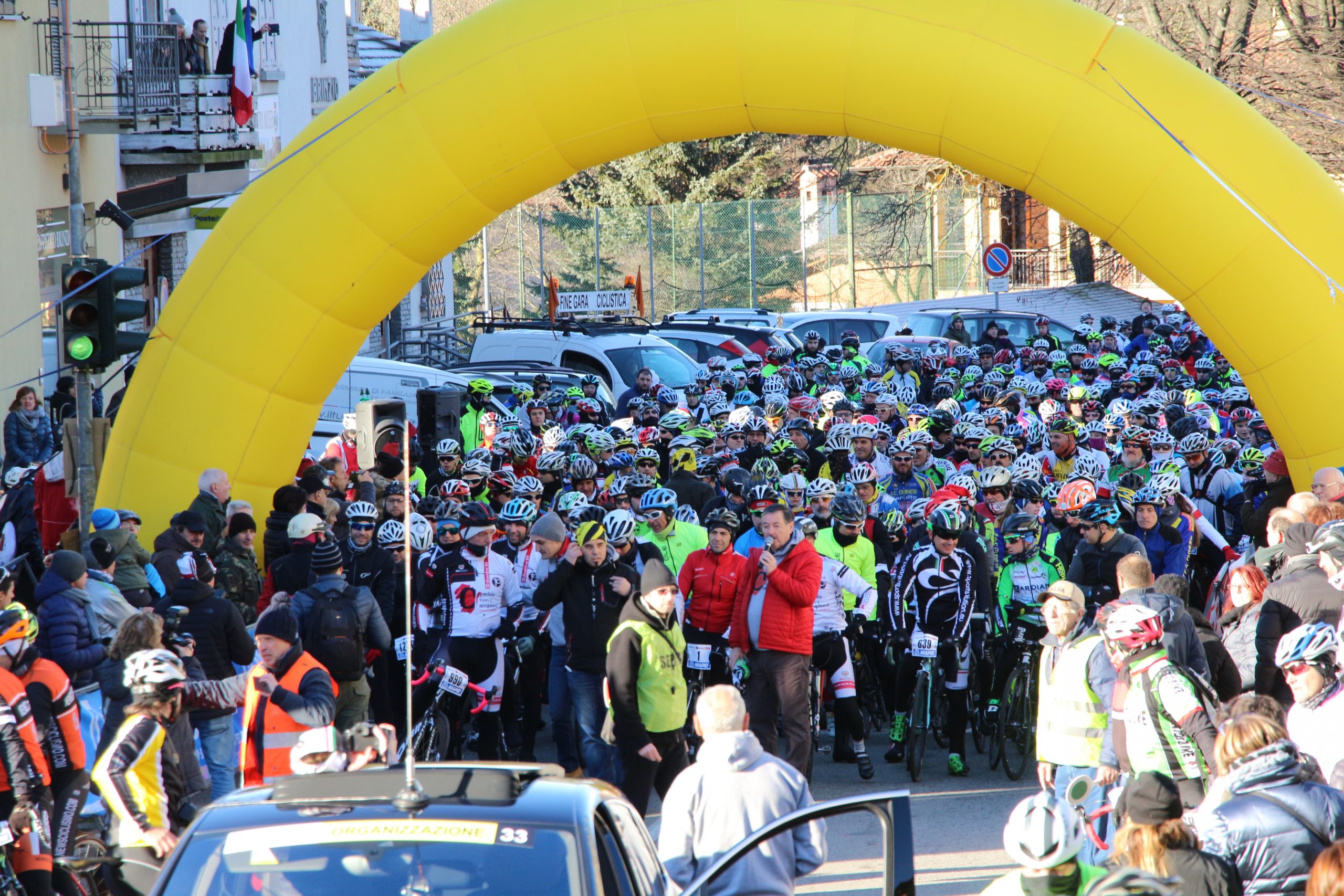 Puntuale come il Natale la “Pedala con i campioni” è partita da Brinzio per colorare il percorso che attraverso Varese e la Valcuvia ha riportato il plotone dei 1600 iscritti al punto di partenza, dopo aver pedalato sui 45km del tracciato disegnato e organizzato dalla Società Ciclistica Alfredo Binda. La giornata di sole ha illuminato i protagonisti del tradizionale appuntamento cicloturistico voluto e promosso dagli ex corridori professionisti varesini guidati da Stefano Zanini, Dario Andriotto, Tupak Casnedi e Cristiano Frattini. Capitani di giornata il due volte maglia rosa Gilberto Simoni e il prof varesino Edward Ravasi del Team Colpack, con i campioni del canottaggio Sara Bertolasi ed Elia Luini. Dal ponte di comando Sergio Gianoli ha dettato i tempi di una giornata dove non è mancata la preghiera con la benedizione davanti alla Cappella della Madonnina del Brinzio e al monumento ai corridori scomparsi, dove tutto cominciò diciassette anni fa al termine della ristrutturazione finanziata con le iscrizioni a quella prima edizione che non venne “pedalata” a causa del maltempo.