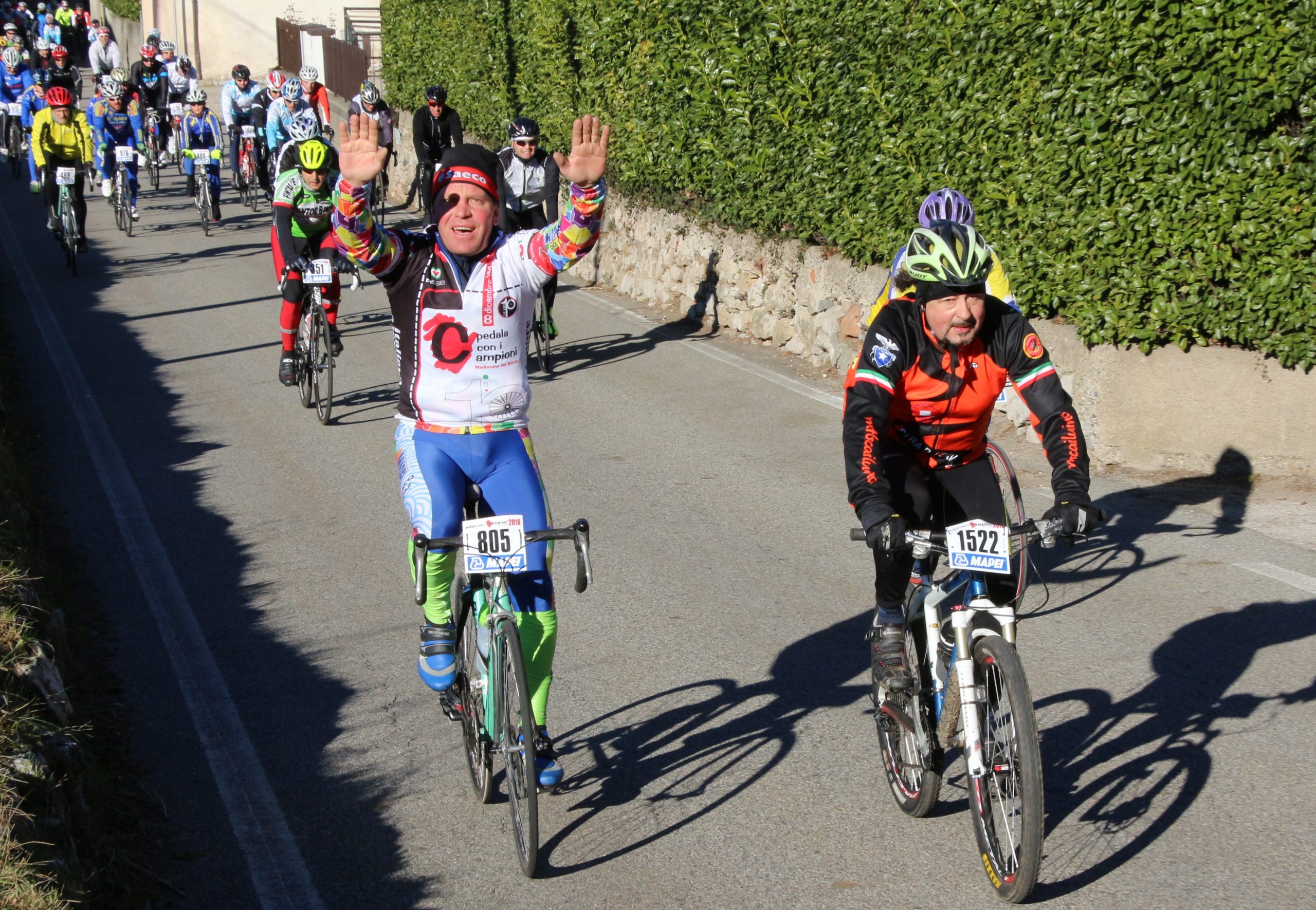 Ideato e portato avanti negli anni per la passione per il ciclismo e l’attenzione per gli altri, l’appuntamento dell’8 dicembre al Brinzio mantiene intatti ideali e obiettivi. Prima o poi, lo capiranno anche i soliti italioti che pur pedalando in sella a mezzi da qualche migliaio di euro si guardano bene dal pagare l’iscrizione, illudendosi che per condividere un evento basta apparire in una fotografia. Nell’anno del decennale, con l’incentivo della maglia celebrativa gli iscritti superarono abbondantemente quota 2000. Ormai prossima al ventennale la “Pedala con i Campioni” è diventata ogni anno più grande.