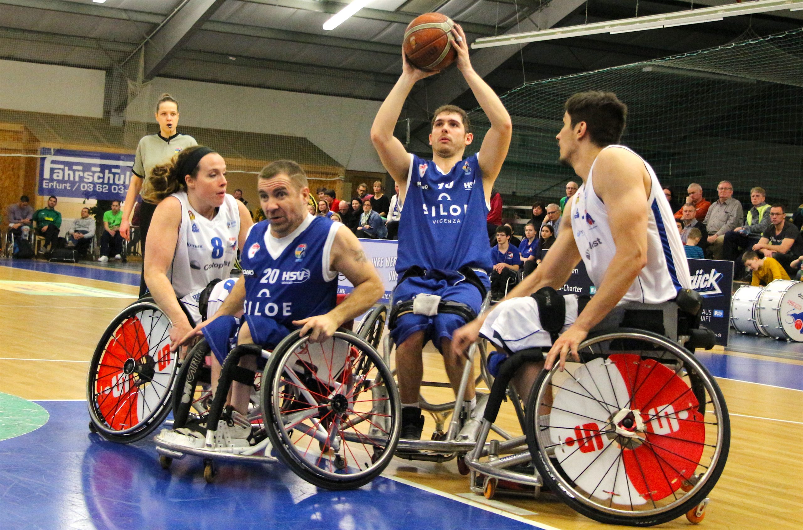 In precedenza Besiktas e i padroni di casa, campioni di Germania del Thuringia, che continuano a braccetto l’avventura in Europa League 1, hanno passeggiato rispettivamente sui francesi del Meaux (76-40) e sugli israeliani dell’Illan Ramat Gan (95-35). L’Handicap Sport ha poi concluso il programma del torneo affrontando il Thuringia primo della classe in una partita, come ripete spesso Pruneri, “utile per imparare e crescere”, chiusa con un coro di applausi sul 51-84, com’è stato anche per la precedente tra il Besiktas e l’Illan Ramat vinta dai turchi, secondi nel girone, 95-35.