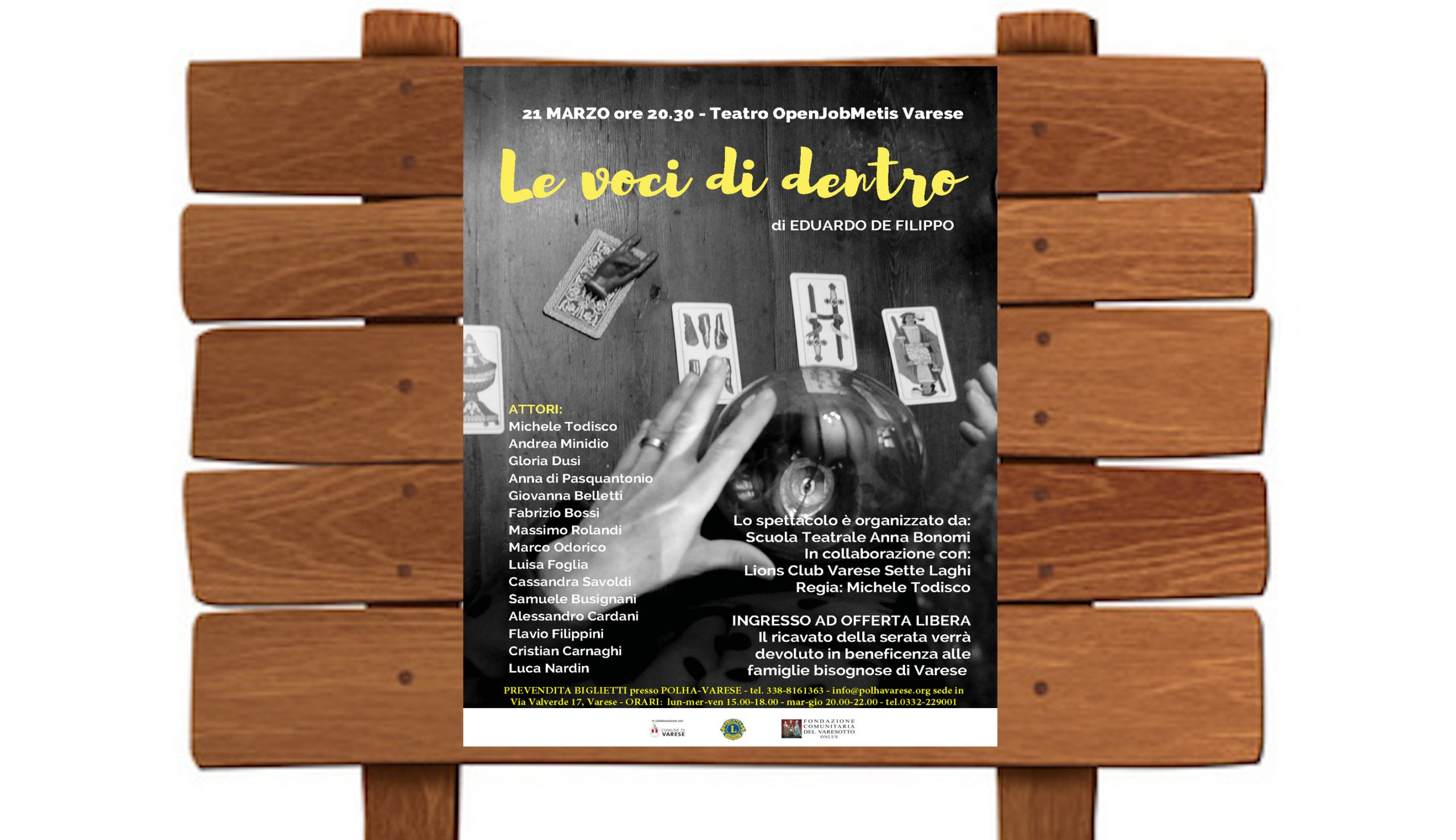 Martedì 21 marzo alle 20.30, sul palco del Teatro Openjobsmetis di Piazza Repubblica a Varese, il Lions Club Varese 7 Laghi mette in scena la commedia di Eduardo De Filippo “Le voci dentro” curato dalla Scuola Teatrale “Anna Bonomi”. Il ricavato sarà destinato alle attività sociali del Club tra le quali è compresa quella a sostegno della Polha Varese, storica realtà varesina dedita alla pratica sportiva delle persone con disabilità. Il costo del biglietto è ad offerta libera con una donazione minima di 10€.