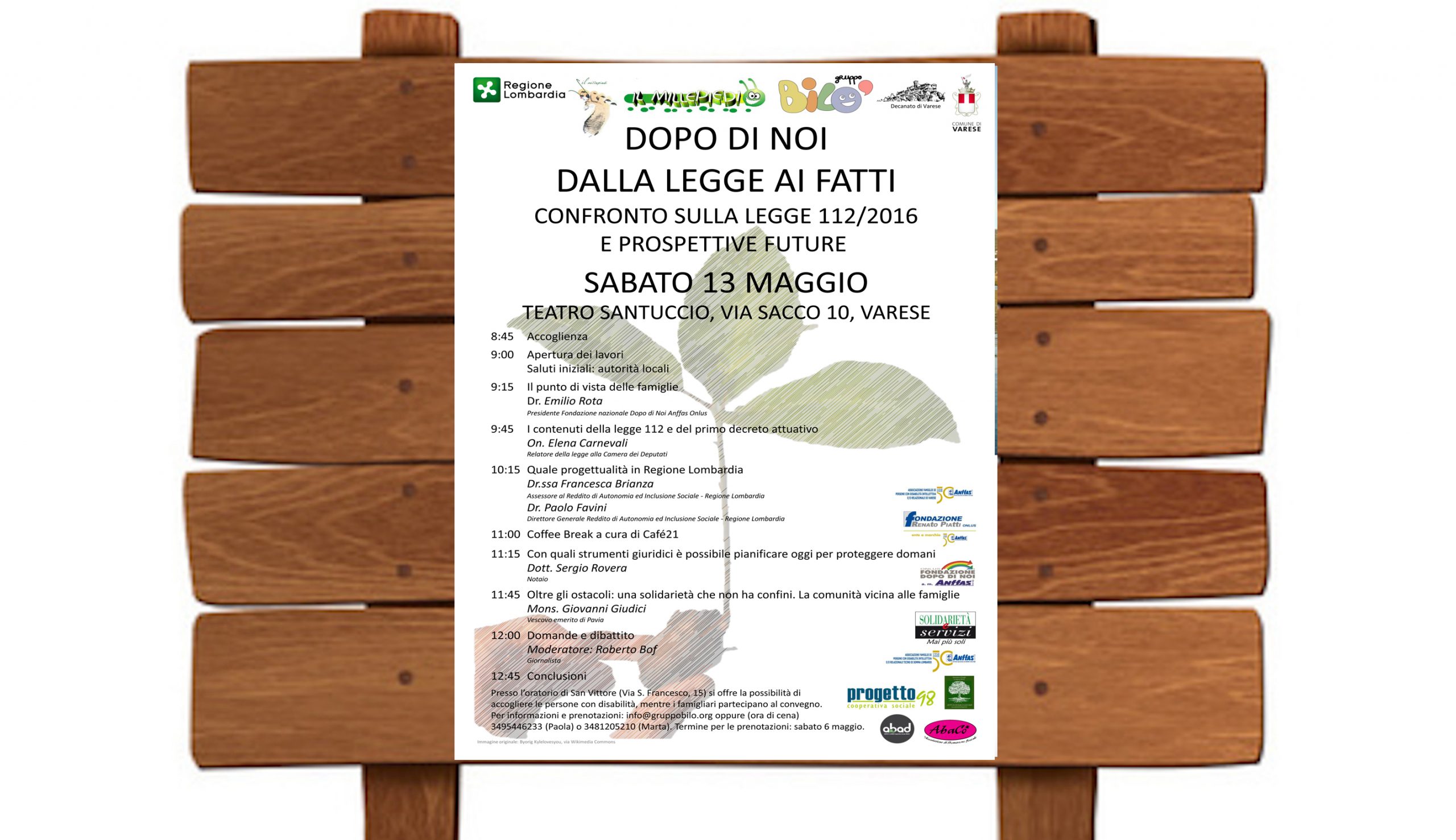 Mattinata intensa quella di domani al Teatro Santuccio di Via Sacco 10 a Varese sede del convegno organizzato dalla Cooperativa Sociale Il Millepiedi in collaborazione con il Gruppo Bilò, Regione Lombardia, Comune e Decanato di Varese. “Dopo di noi dalla legge ai fatti” è un confronto aperto tra i relatori e il pubblico sulla legge 112/2016.