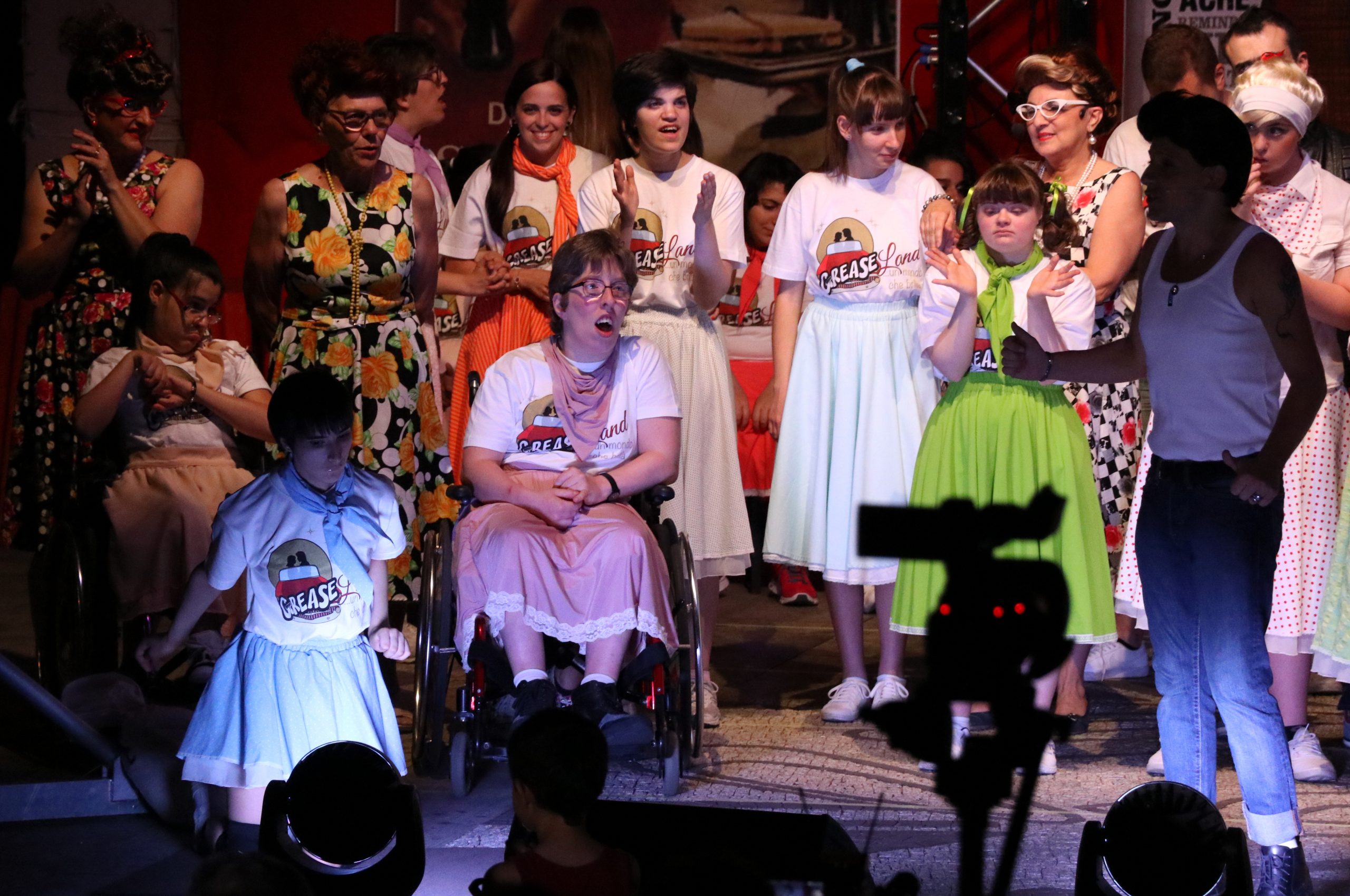 Dopo la prima al Teatro Pasta di Saronno seguita da una lunga serie di repliche in piazze, teatri e scuole, il musical “GreaseLand” della Cooperativa Il Granello è arrivato all’appuntamento più sentito, a casa sua, nel cuore di Cisalgo. E’ stata una festa di compleanno fantastica dove nessuno si è sentito comparsa, tutti decisi, sul palco e in piazza, a recitare il ruolo dei protagonisti, decisi a continuare a scrivere una storia iniziata trent’anni fa. Un inno alla persona che è ben rappresentato da una battuta nei primi minuti del musical di un attore in carrozzina che rispondendo ad uno sfottò dell’amico “capobranco” dice:”Ciccio guarda che se mi alzo sono più grande di te”.