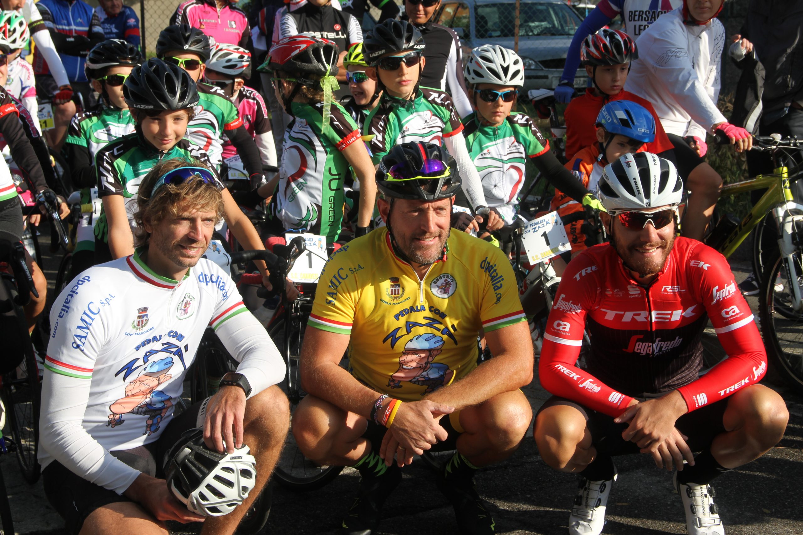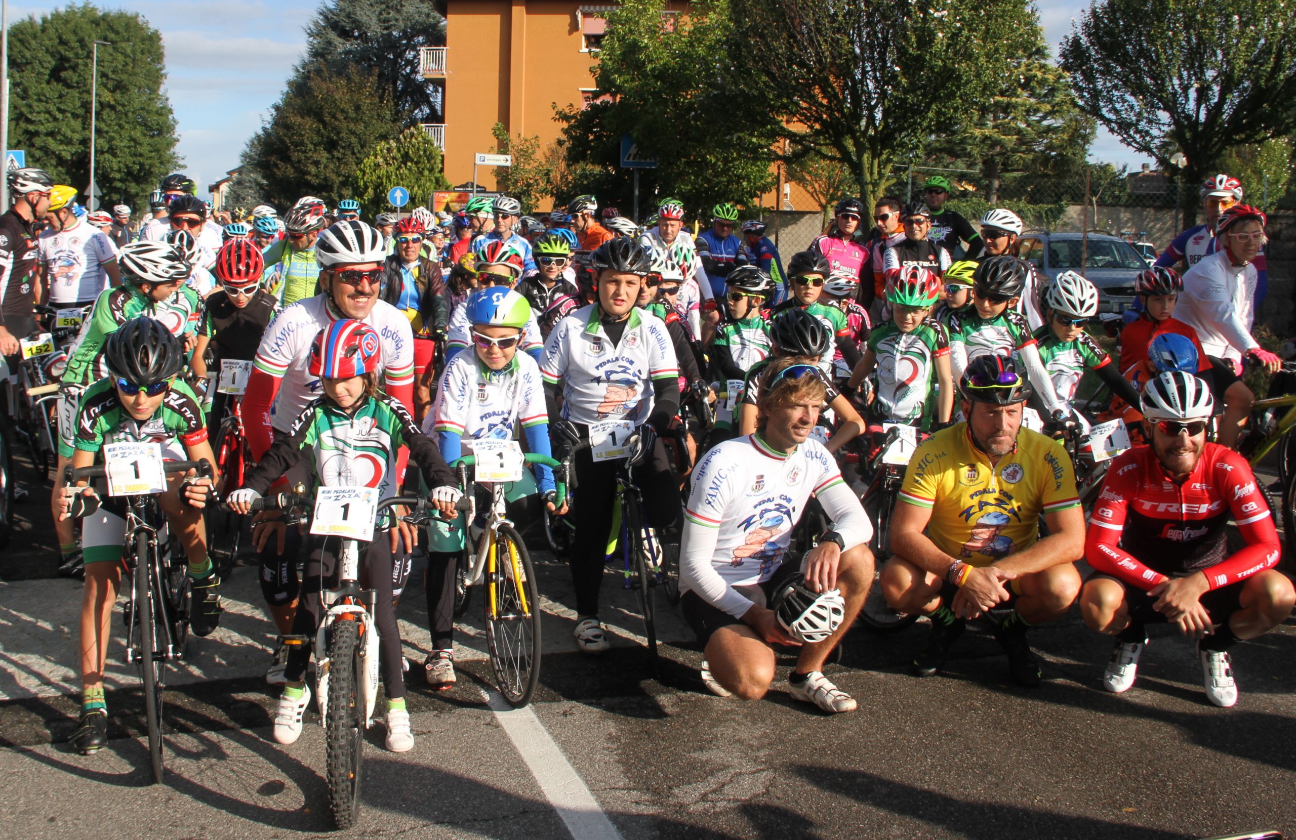La 6a edizione della “Pedala con Zazà”, insieme alla gara dei Giovanissimi, ha colorato e riempito d’entusiasmo Gorla Maggiore e l’intera Valle Olona. Di prima mattina al via della pedalata benefica si sono presentati in 310 arrivati grazie al passaparola tra gli amatori e all’amicizia per l’ex professionista Stefano Zanini in testa al gruppo insieme ai professionisti Eugenio Alafaci, Giacomo Bizzolo e Carmelo Foti anche l’ex campione del mondo di canottaggio Elia Luini sempre presente alla “Pedala con Zazà” fin dalla prima edizione.