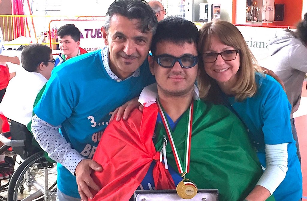 Sabato prossimo alle 17.00 la Cimberio Varese farà il suo esordio casalingo nel campionato di serie A di basket in carrozzina ospitando l’Amicacci Giulianova. Entrambe vittoriose nella prima giornata, Varese e Giulianova si sono presentate al via con ambizioni diverse. La prima ricca di novità, per quanto riguarda gli stranieri e per lo zoccolo duro dei varesini rinforzato dai rientri alla base dell’esperto Marco Paonessa e del giovanissimo Mattia Castorino (nella foto con i genitori) che porta in dote il titolo di Campione d’Italia conquistato nella scorsa stagione con la maglia della Briantea Cantù.
