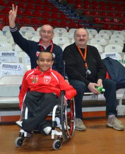 Lo stesso giorno anche un altro ragazzo poco più grande di me, Mattia Castorino, approcciava per la prima volta a questo sport. Ci fecero salire su delle carrozzine da gioco ed iniziammo a girare a bordo campo per prender confidenza con il “nuovo mezzo”. Accomunati da questa nuova esperienza, dall’emozione e dalla tanta determinazione io e Mattia iniziammo a parlare ed oltre ad un nuovo compagno di squadra, conobbi un grande amico, con il quale a distanza di anni avrò il piacere di condividere grandi emozioni sportive.