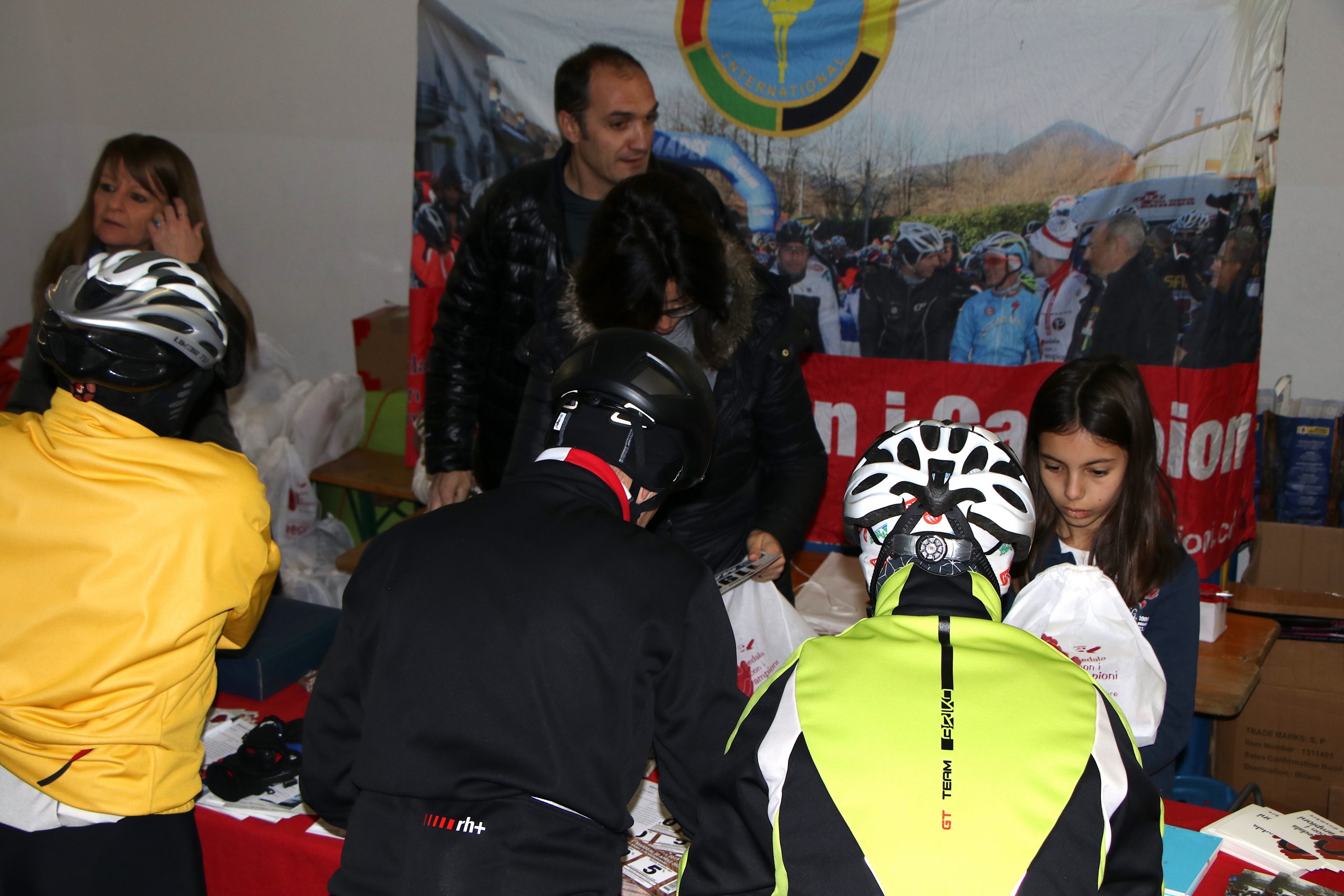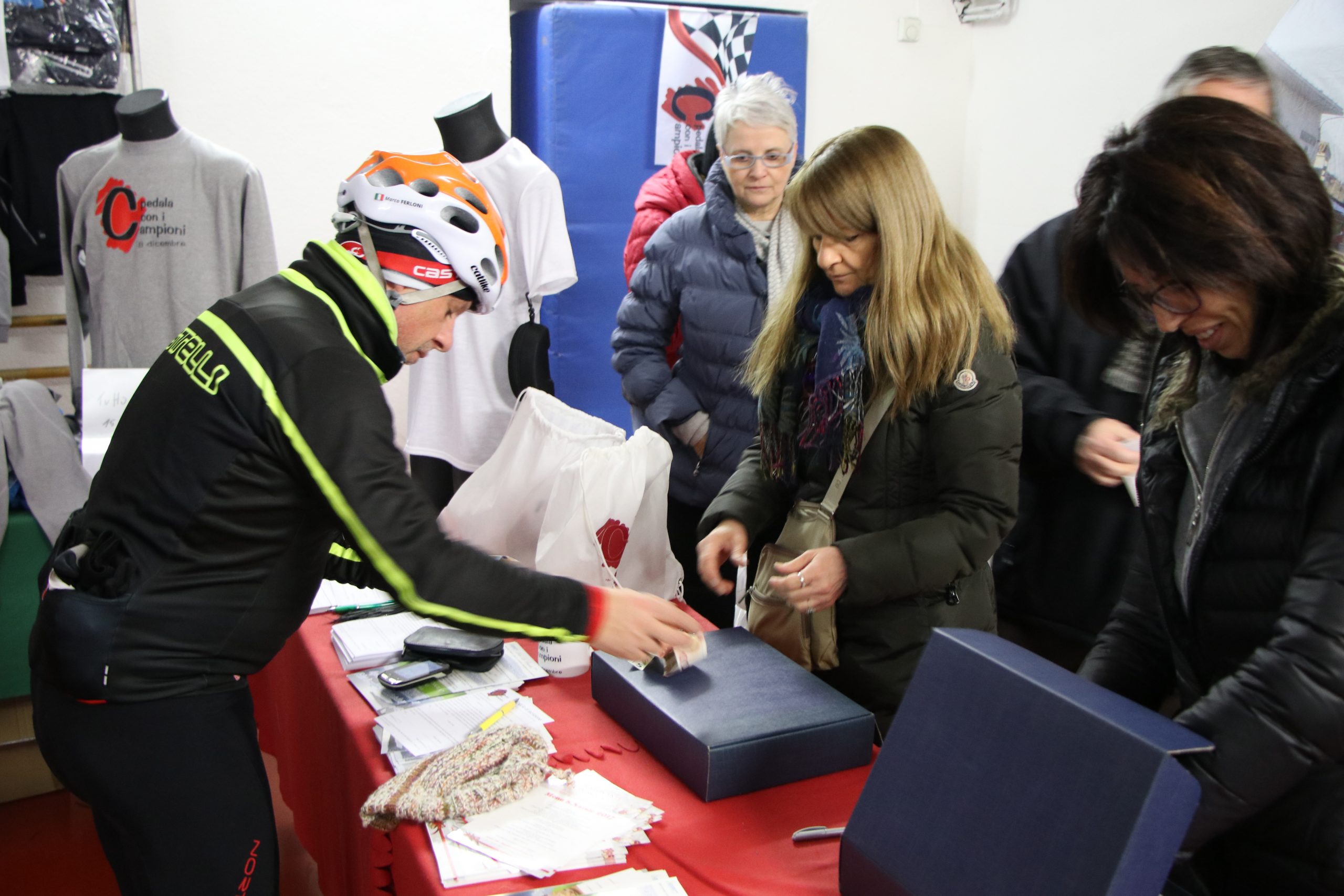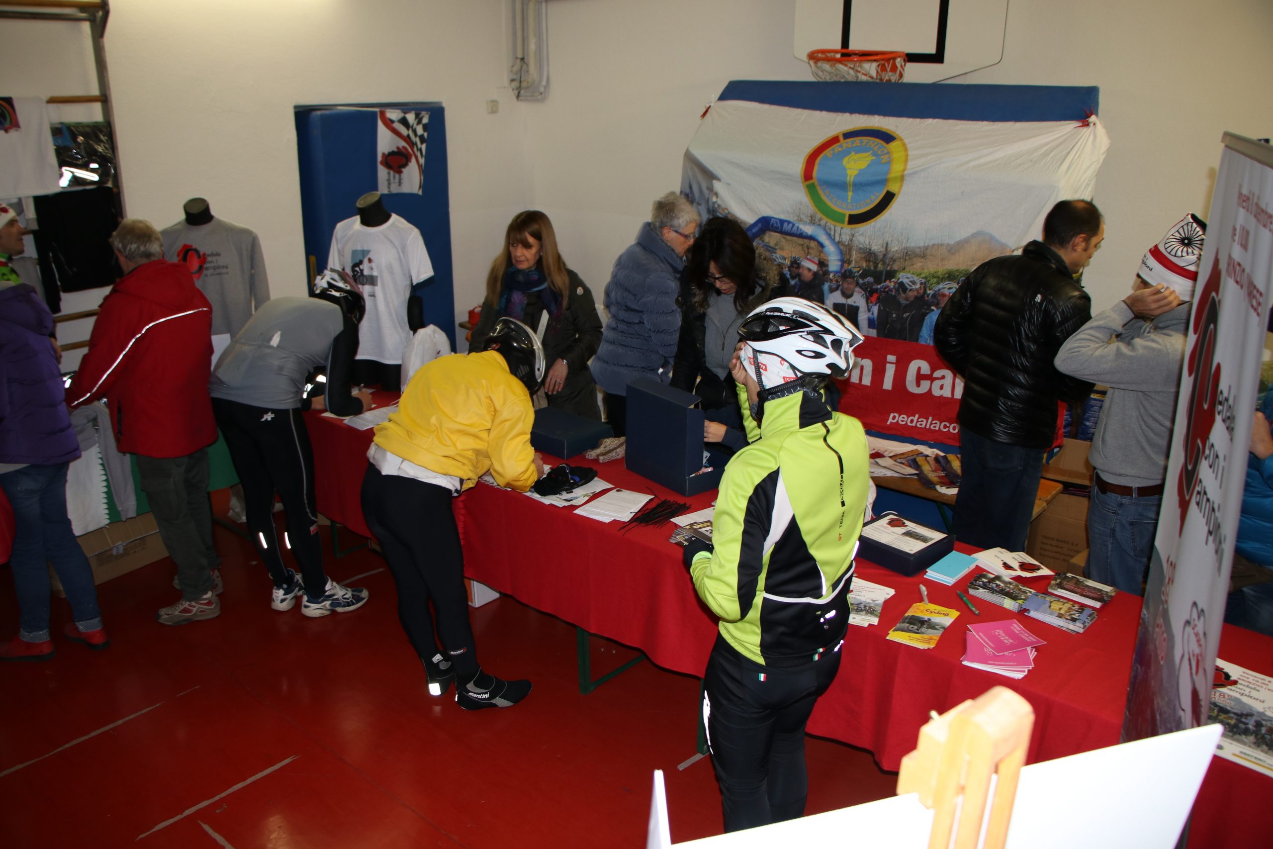Chi vuol bene alla Pedala con i Campioni e chi con il passare degli anni ha voluto mantenere il suo impegno sa bene che il villaggio di partenza e arrivo non appare per magia, i pacchi gara vanno trovati, riempiti e distribuiti. Anche i moduli delle iscrizioni vanno distribuiti, in sempre più punti e in un territorio sempre più vasto ma non basta, poi vanno anche ritirati perchè ogni iscritto possa avere la garanzia di partecipare alle estrazioni dei premi ma soprattutto pedalare coperto da un minimo assicurativo.