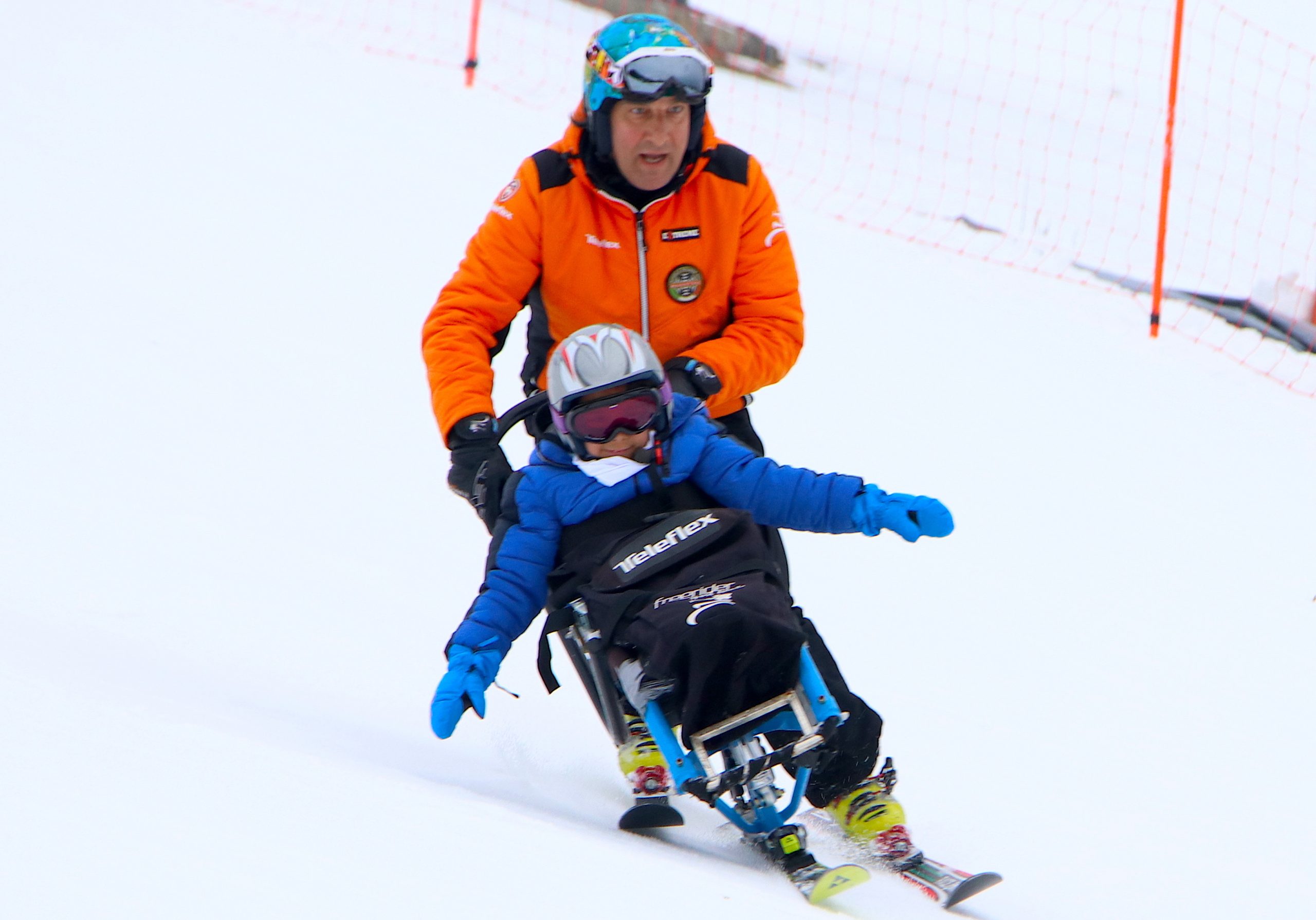 Nicola insegna a sciare a chi non può più o non potrebbe mai imparare in piedi.